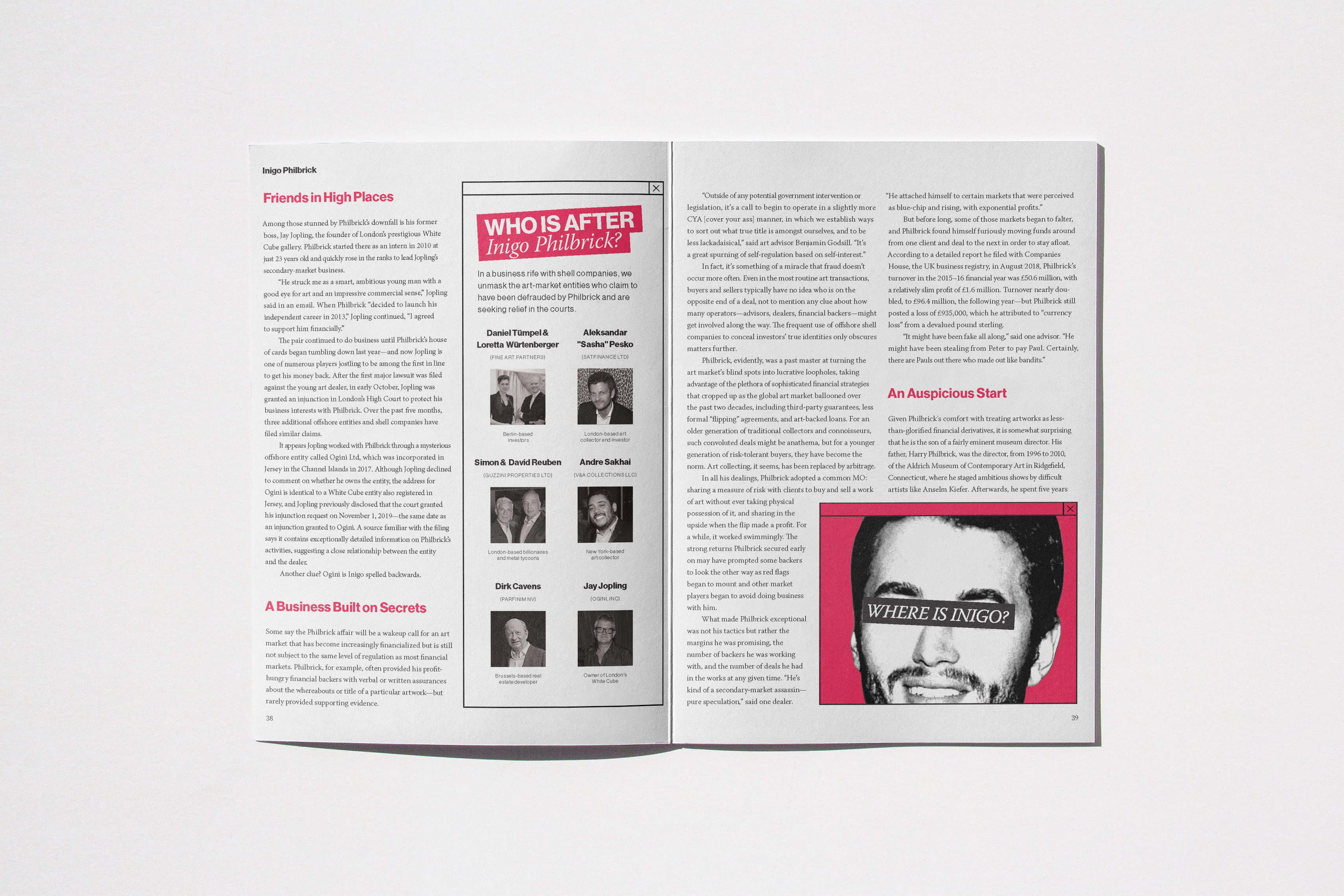 Editorial design, illustration, and motion graphics for Artnet’s biannual print magazine analyzing the global art market.